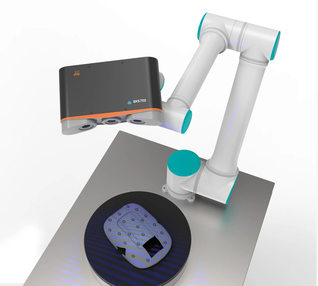 “AI驱动的双目视觉三维精密测量与缺陷智能检测系统” 项目聚焦高端装备制造领域。系统集成数字光栅投影三维扫描、六自由度仿生机械臂、增材制造验证三大核心技术,实现非接触式全自动高精度测量(精度±0.02mm,分辨率≥400万点),单幅测量范围≥320mmx210mm,支持标志点/转台自动拼接,覆盖汽车、航空、船舶、医疗、机床、军工等复杂零件检测场景。